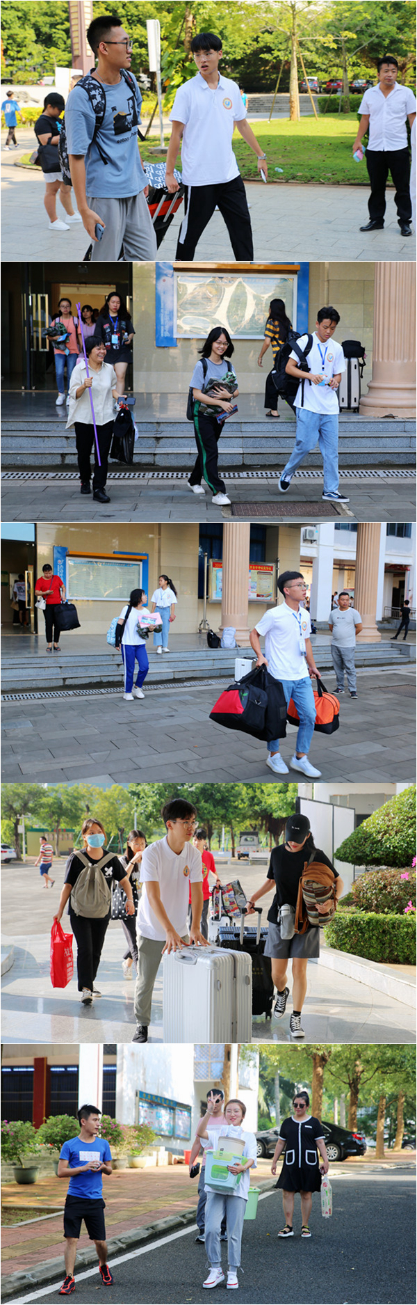 隨著學(xué)院迎新工作正式啟動,一個個忙碌身影漸漸盈滿校園,他們或提著行李,或熱心的解答問題,或為新人指引道路,他們熱情開朗,為初入大學(xué)校園的新生、家長們熱情服務(wù),展示青春洋溢的絢麗笑顏。有關(guān)部門、各系部老師們和學(xué)生志愿者們認(rèn)真地值守在自己的崗位上,各司其職,用自己的陽光面貌,用一句句溫暖的問候,歡迎著來自祖國四海八方的莘莘學(xué)子們,正式加入到海外院這個滿懷溫情的大家庭中。
