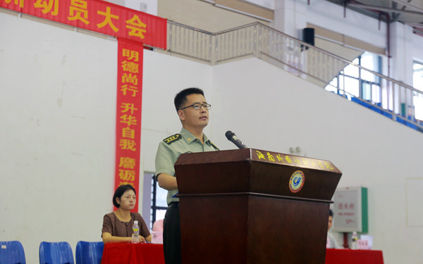 參訓部隊參謀長黃文亮在講話中指出軍訓是新生們邁入大學的第一步,希望同學們能迎難而上、挑戰(zhàn)自我,增強自身的國防知識,同時以昂揚的意志和高度的熱情配合教官,圓滿完成此次的軍訓。