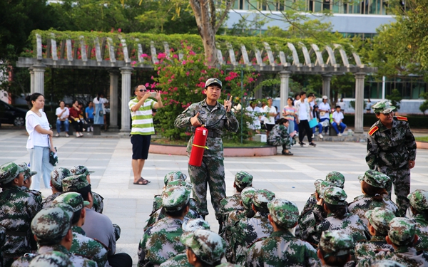 在消防疏散演練和消防技能展示中,軍訓(xùn)教官先給新生們講解突發(fā)火災(zāi)時,如何正確逃生和注意事項(xiàng)。隨即進(jìn)行疏散演練,新生們先在各個樓層待命,教官的哨聲一響,同學(xué)們便按照教官的指示有序的逃離模擬現(xiàn)場。在消防技能展示環(huán)節(jié),教官先向同學(xué)們講解自救呼吸器和滅火器的使用方法,并進(jìn)行示范,講解動作要領(lǐng),隨后邀請同學(xué)們進(jìn)行操作演練。在滅火的過程中,同學(xué)們毫不畏懼地提起滅火器按要求將火撲滅。