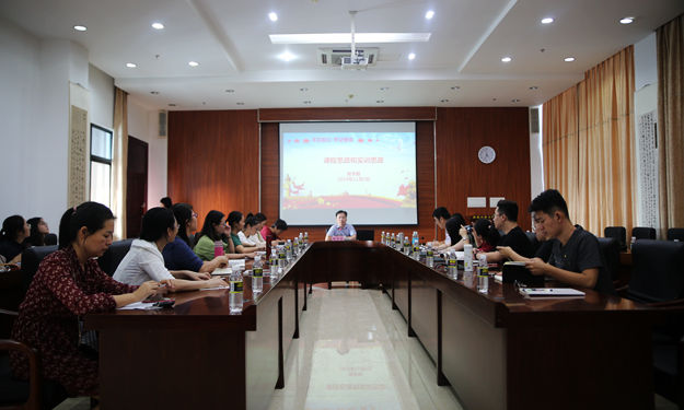 楊學(xué)前副院長針對“課程與實(shí)訓(xùn)思政教育”展開講述,聚焦三點(diǎn):思政是什么,人才培養(yǎng)的大目標(biāo)是什么,課程是什么、有什么,實(shí)訓(xùn)目的是什么、實(shí)訓(xùn)過程如何實(shí)現(xiàn)人才培養(yǎng)目標(biāo),闡述和分析“課程思政”在立德樹人中的作用和影響,更結(jié)合思政教育理論與實(shí)踐知與行統(tǒng)一原則,分析“課程思政”應(yīng)堅(jiān)持的基本原則,從各個(gè)方面進(jìn)行全面分析與介紹,并結(jié)合本院實(shí)際情況與英語系特色展開講解。