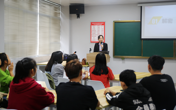 揭牌儀式后,隨即開展基地設(shè)立后的首場金融知識專題講座。講座通過專業(yè)人員的講解,以“校園貸”、“套路貸”等現(xiàn)象為例,揭示“校園貸”、“套路貸”造成的危害,并提出應(yīng)對措施,警示大家識別“校園貸”、“套路貸”陷阱,幫助同學(xué)們樹立正確的理財(cái)和消費(fèi)觀念,提升反假防騙的意識和能力。講座深入淺出,活生生的例子讓在場同學(xué)受到很大觸動(dòng)。