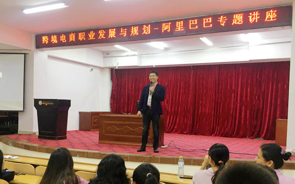 整場講座共有三項內(nèi)容,首先由阿里巴巴國際站運營專家、阿里巴巴云桂區(qū)域合伙人李易寒總經(jīng)理從“中國出口貿(mào)易現(xiàn)狀”、“全球跨境電商市場”、“阿里巴巴國際站海南布局”和“跨境電商職業(yè)發(fā)展規(guī)劃”等四個方面給同學(xué)們作精彩分享。他富有親和力的演講方式深受同學(xué)們的喜愛,會場時不時響起陣陣熱烈的掌聲。