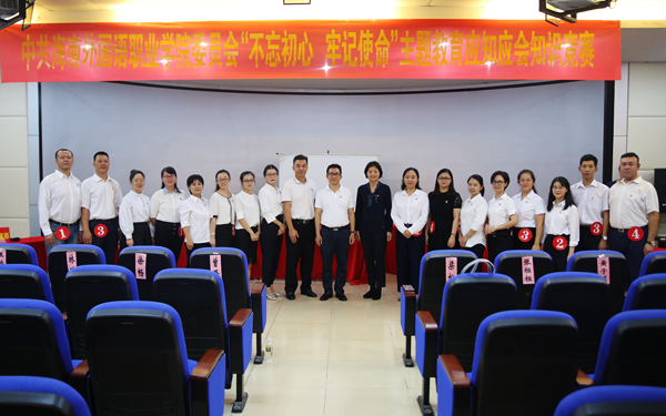 學(xué)院黨委書記曾鋒,黨委副書記、紀(jì)委書記徐暢,黨委委員梁松親臨現(xiàn)場,與各基層黨組織黨員一同觀看了決賽,并分別為獲獎(jiǎng)隊(duì)伍頒獎(jiǎng)。經(jīng)過前一階段的初賽,英語系黨總支部、西語系黨總支部、旅游系黨總支部、思想政治理論課教學(xué)科研部直屬黨支部等四支參賽隊(duì)伍脫穎而出,進(jìn)入決賽。