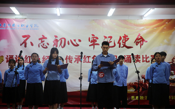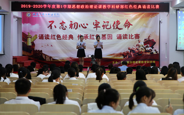 11月27日,我院思想政治理論課教學(xué)科研部主辦的紅色經(jīng)典誦讀決賽在圖書館多功能報(bào)告廳舉行。來(lái)自各系部的40支隊(duì)伍以高昂的熱情和飽滿的精神狀態(tài)在比賽中進(jìn)行誦讀展示。