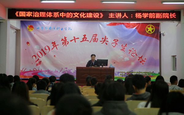 12月10日下午,我院楊學前副院長在圖書館多功能報告廳給學生們上了一堂精彩的形勢與政策課。他以《國家治理體系中的文化建設》為題,通過真實案例、發(fā)展中的現(xiàn)象,對比中國與其他國家的文化,和自已到過其他國家體驗不同文化,重點講了中國道路以及中國文化的傳承。