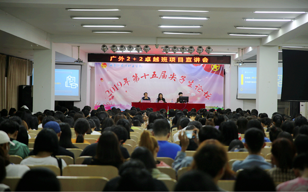 12月12日晚,廣東外語外貿(mào)大學公開學院副院長胡海娟、大學城分部主任王莉莎到我院進行2020年度“2+2卓越班”項目宣講。宣講會分為兩場,近900名學生參加。