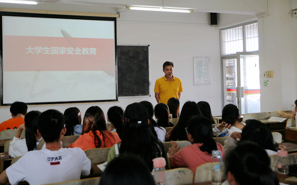 課上,梁松委員從“什么是國(guó)家安全觀”、“如何正確認(rèn)識(shí)國(guó)家安全的重要性”、“危害國(guó)家安全的行為”、“公民有哪些維護(hù)國(guó)家安全的權(quán)利和義務(wù)”、“作為大學(xué)生怎樣維護(hù)國(guó)家安全”等五個(gè)方面對(duì)國(guó)家安全知識(shí)進(jìn)行介紹和解讀。他介紹了國(guó)家安全觀的概念和我國(guó)國(guó)家安全形勢(shì)發(fā)展的進(jìn)程,帶領(lǐng)同學(xué)們學(xué)習(xí)了習(xí)近平總書(shū)記關(guān)于國(guó)家安全的重要論述;以詳實(shí)的案例為佐證,闡述了國(guó)家安全的重要性,介紹了危害國(guó)家安全的五大種行為以及公民維護(hù)國(guó)家安全的權(quán)利和義務(wù)。