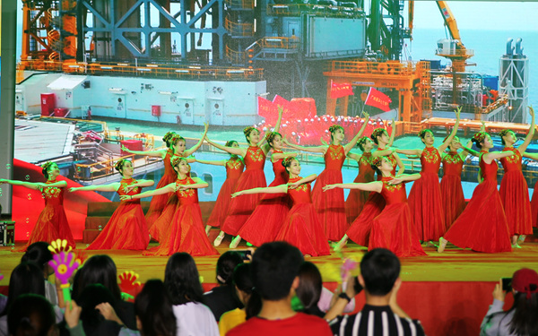 來(lái)自國(guó)際交流中心的俄羅斯外教帶來(lái)的獨(dú)唱節(jié)目《Holiday》,整首歌曲曲風(fēng)輕快,歌聲優(yōu)美動(dòng)聽(tīng),在場(chǎng)的觀眾無(wú)一不沉醉其中。學(xué)院舞蹈團(tuán)帶來(lái)的文昌傳統(tǒng)舞蹈《婚慶盅盤》十分有趣,用舞蹈的方式展現(xiàn)了文昌傳統(tǒng)文化。我院旅游系帶來(lái)的情景禮儀節(jié)目《建功國(guó)際自貿(mào)島,青春禮儀我先行》格外吸睛,同學(xué)們?cè)谂_(tái)上展現(xiàn)了其專業(yè)領(lǐng)域規(guī)范的禮儀動(dòng)作,既體現(xiàn)了專業(yè)特色又值得大家學(xué)習(xí)。人文藝術(shù)系的姚家卓老師獨(dú)唱英文歌曲《Home》十分動(dòng)聽(tīng),師生紛紛喝彩。