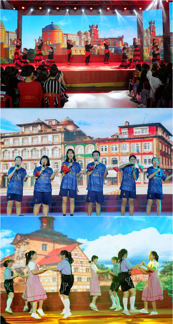 東語(yǔ)系和西語(yǔ)系帶來(lái)的舞蹈串燒《東聞起舞》和《風(fēng)情歐洲》,讓學(xué)生感受到充滿異域風(fēng)情的舞姿以及各地的文化特色,豐富了大家的精神世界。人文藝術(shù)系帶來(lái)的音詩(shī)畫(huà)《祖國(guó)啊,我親愛(ài)的祖國(guó)》以深情的朗誦配合歌唱舞蹈,表達(dá)了學(xué)子們對(duì)祖國(guó)熱烈的敬愛(ài)之情。晚會(huì)在舞蹈《奮進(jìn)新時(shí)代》中圓滿落下帷幕。
