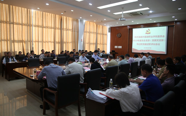為貫徹落實習近平總書記關于黨的建設和組織工作的重要論述精神,堅持和完善基層黨組織書記抓黨建述職評議考核工作,進一步推動全面從嚴治黨向基層延伸,整體提升基層黨建工作質(zhì)量,根據(jù)我院《中共海南外國語職業(yè)學院委員會關于開展2019年度基層黨組織書記抓黨建述職評議考核工作的通知》要求,1月7日上午,我院在綜合樓七樓第一會議室召開2019年度基層黨組織書記抓黨建述職評議考核會。學院黨委書記曾鋒,黨委委員、副院長楊學前,黨委委員梁松出席會議。各黨總支部(直屬黨支部)的書記參加會議并作述職。本次會議的參加人員還有各系部主任、各黨總支部(直屬黨支部)委員和黨員群眾代表。