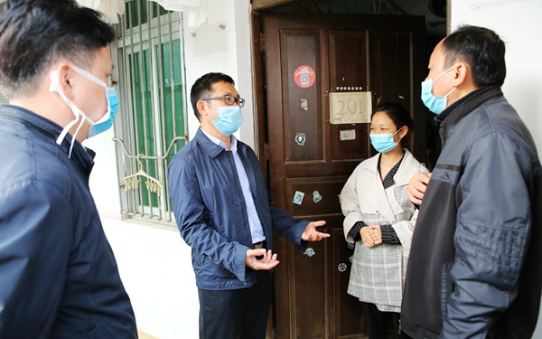 在東校門,曾鋒書記一行檢查了門衛(wèi)管理工作,對進一步加強出入人員檢查登記等工作作出部署和要求,并關心慰問了堅守在防疫一線的后勤保衛(wèi)人員。在學生宿舍,曾鋒書記一行看望了假期留校的中外學生,詢問了解他們近段時間生活情況,囑咐他們做好個人防護,積極配合學院防控疫情舉措,共同打贏疫情阻擊戰(zhàn);同時,他要求有關部門要密切關注留校師生情況,做好留校師生后勤服務工作。