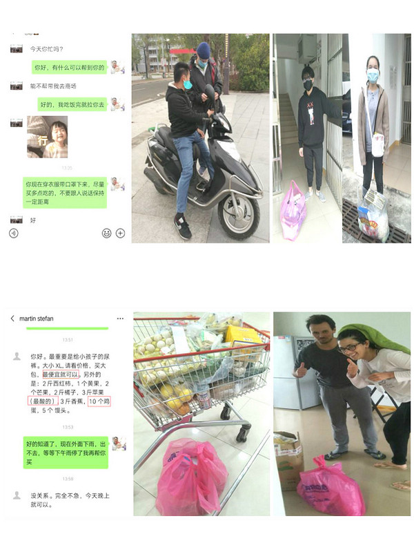 疫情期間,我院國(guó)際交流中心和各系部主動(dòng)關(guān)心外籍師生的生活學(xué)習(xí),及時(shí)了解收集外籍師生的合理訴求,及時(shí)予以幫助和解決。采取多種舉措,用心守護(hù)在校外籍師生的安全,包括普及防護(hù)知識(shí),班主任、輔導(dǎo)員、宿管教師在微信群及時(shí)告知防控措施、疫情近況,引導(dǎo)師生科學(xué)理性認(rèn)識(shí)肺炎疫情,不信謠、不造謠、不傳謠,緩解恐慌情緒,增強(qiáng)戰(zhàn)“疫”信心;安排專人值守,安排專門的值班宿管教師值守,每日監(jiān)測(cè)宿舍衛(wèi)生和師生健康狀況;代買代購(gòu)生活物資,接送師生前往校外購(gòu)買生活用品,或根據(jù)師生需求代買代購(gòu)生活物資,確保師生生活不受影響;發(fā)放防護(hù)物資,給師生分發(fā)口罩、洗手液等防護(hù)物資,每日上門測(cè)量體溫;有序組織和開展留學(xué)生的線上教學(xué),保證教育教學(xué)正常秩序。
