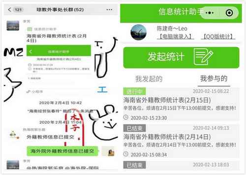 按照與國(guó)內(nèi)師生信息排查的同等要求,國(guó)際交流中心對(duì)全體外籍師生假期的行程動(dòng)態(tài)和健康情況進(jìn)行無差別摸排統(tǒng)計(jì),建立動(dòng)態(tài)信息報(bào)送機(jī)制;建立了外事相關(guān)部門負(fù)責(zé)人、學(xué)院分管領(lǐng)導(dǎo)、學(xué)院主要領(lǐng)導(dǎo)三級(jí)責(zé)任體系;通過線上線下相結(jié)合的方式,開發(fā)統(tǒng)計(jì)小程序等,指導(dǎo)并確保在校外籍師生如實(shí)填報(bào)相關(guān)內(nèi)容。