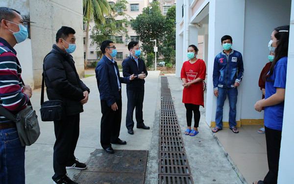 學(xué)院黨委書記曾鋒(左三)率隊(duì)看望慰問外籍師生,檢查外籍師生防控措施落實(shí)情況,并提指導(dǎo)意見和工作要求