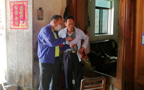 為確保結對幫扶取得實實在在的效果,吳東陽要求全體黨員、干部在疫情防控期間對自己幫扶的貧困戶開展“六個一”幫扶工作,即給貧困戶打一個電話、搞一次疫情再排查、做一次疫情防控知識宣傳、再摸排一次貧困戶“兩不愁三保障”情況、定一個幫扶計劃、為貧困戶送一次防控物資。通過開展“六個一”工作,讓村里的黨員、干部精準掌握貧困戶家中的情況,對貧困戶因疫情影響而產生的問題進行及時解決,全力保障疫情防控期間貧困戶的基本生活。
