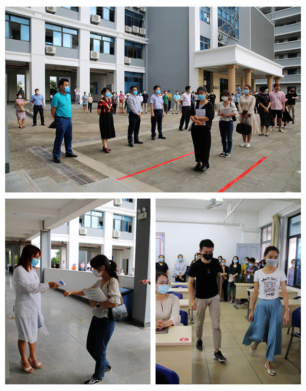 為保障開學(xué)平穩(wěn)有序進(jìn)行,檢驗(yàn)開學(xué)疫情防控預(yù)案的操作性,提高學(xué)院疫情防控應(yīng)急能力,切實(shí)維護(hù)師生身體健康和生命安全,4月30日下午,我院開展開學(xué)疫情防控模擬應(yīng)急演練。學(xué)院黨委書記曾鋒、院長李渝鳳、副院長楊學(xué)前、黨委委員梁松到場指揮演練。各部門、各系部負(fù)責(zé)人,有關(guān)職能部門工作人員,全體學(xué)工人員,各系部教師等觀摩演練。