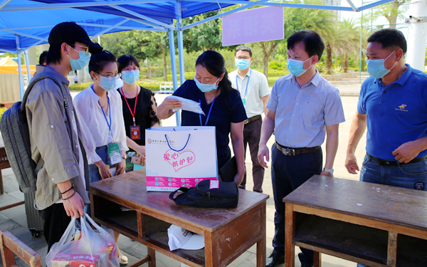 在東校門,邢彩虹副市長親自體驗(yàn)了消毒通道、自動(dòng)測溫門和人工二次測溫等校門防控流程,對學(xué)院嚴(yán)格按照有關(guān)規(guī)定要求認(rèn)真做好校門管理予以贊許。在校門口簽到登記處,看到一位剛辦理完登記的學(xué)生,她主動(dòng)上前,詢問學(xué)生返校情況,還饒有興趣地看了學(xué)院給每位返校學(xué)生發(fā)放的愛心防護(hù)包,叮囑學(xué)生在校期間要遵守學(xué)院各項(xiàng)防控規(guī)定,繼續(xù)做好個(gè)人防護(hù)。