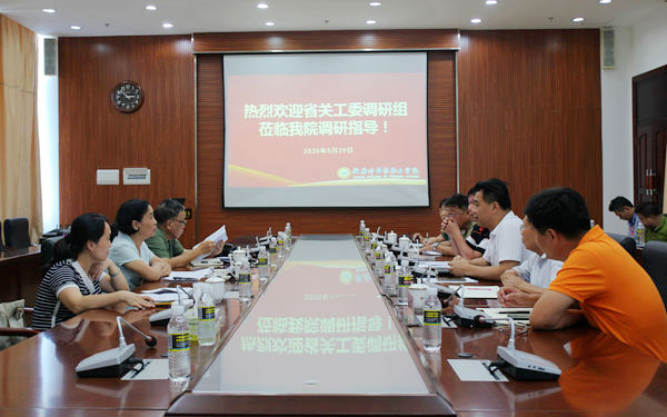 5月29日下午,省關(guān)工委常務(wù)副主任韓美、副主任林萬里、辦公室副主任史新顏一行蒞臨我院調(diào)研檢查關(guān)工委工作,并在綜合樓7樓第一會(huì)議室舉行座談會(huì)。我院黨委委員梁松,關(guān)工委主任韓祝疇、副主任莫運(yùn)深,以及全體關(guān)工委成員等參加座談會(huì)。梁松委員主持座談會(huì)。