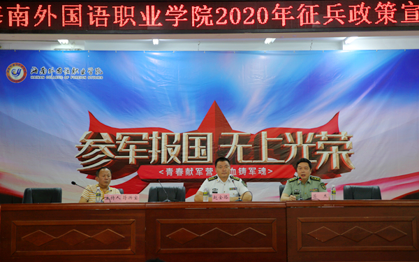 為激發(fā)我院學生報效祖國、獻身國防的熱情,宣傳大學生參軍入伍政策,推動2020年大學生征兵工作,日前,我院在圖書館多功能報告廳開展征兵政策宣講會。文昌市人民武裝部政委趙金路、文昌市人民武裝部副部長蘇杰、我院黨委委員梁松、學生處處長出席會議,我院各系部學生參加會議。宣講會由學生處處長主持。