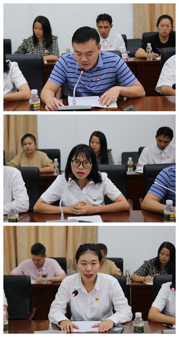 隨后,英語系黨總支部副書記吳清暉、旅游系教師黨員冼潔丹、西語系學(xué)生黨員田蕓菡先后作交流發(fā)言。