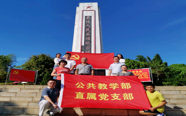 為慶祝中國(guó)共產(chǎn)黨成立99周年,進(jìn)一步加強(qiáng)基層黨組織和黨員隊(duì)伍建設(shè),弘揚(yáng)黨的優(yōu)良傳統(tǒng),營(yíng)造愛崗敬業(yè)、吃苦耐勞的良好氛圍,深切緬懷為海南人民的解放事業(yè)長(zhǎng)期堅(jiān)持瓊島革命斗爭(zhēng)和英勇渡海作戰(zhàn)的革命前輩、革命烈士,7月17日下午,公共教學(xué)部直屬黨支部在支部副書記李詩鈺的帶領(lǐng)下赴“抗日模范鄉(xiāng)”——文昌市南陽墟開展“七一”主題黨日活動(dòng)——參觀南陽人民英雄紀(jì)念碑和南陽革命紀(jì)念園。