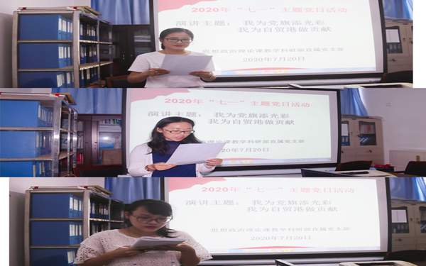 全體黨員首先在綜合樓606黨員活動(dòng)室集中開展“我為黨旗添光彩,我為自貿(mào)港做貢獻(xiàn)”主題演講。
