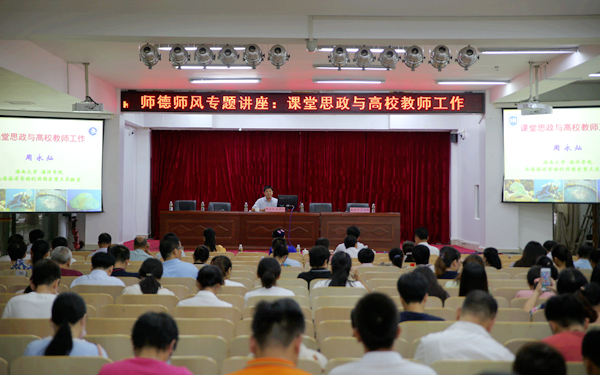 9月10日教師節(jié)當(dāng)天下午,我院在圖書館多功能報告廳舉辦師德師風(fēng)專題講座,邀請海南大學(xué)海洋學(xué)院院長、全國先進(jìn)工作者、全國優(yōu)秀教師周永燦教授來校講授《課堂思政與高校教師工作》。學(xué)院院長李渝鳳、黨委副書記黃麗芹、副院長楊學(xué)前、副院長梁松與全體教師一同聆聽講座。黨委副書記黃麗芹主持講座。