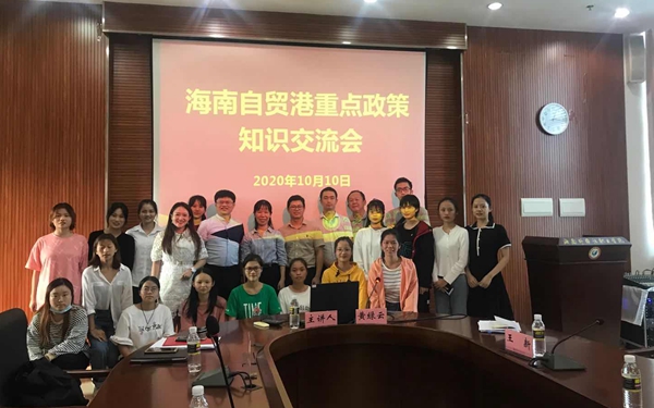 為推進(jìn)學(xué)院廣大師生們更好地學(xué)習(xí)海南自由貿(mào)易港建設(shè)總體方案的要求,致力服務(wù)建設(shè)海南自由貿(mào)易港,10月10日下午,我院特邀省委政研室決策咨詢處處長(zhǎng)陳珂,副處長(zhǎng)段勇兵,干部黃綠云、王新蒞臨我院開(kāi)展“海南自貿(mào)港重點(diǎn)政策知識(shí)交流會(huì)”,交流會(huì)分兩個(gè)會(huì)場(chǎng)。院長(zhǎng)李渝鳳、黨委副書記黃麗芹、副院長(zhǎng)楊學(xué)前、副院長(zhǎng)梁松出席交流會(huì)。各部門主要負(fù)責(zé)人,系部書記、主任,各黨支部書記,各教研室主任,國(guó)際交流中心人員等五十余人在會(huì)場(chǎng)一參加交流會(huì),會(huì)議由黨委副書記黃麗芹主持。學(xué)院學(xué)生處干部、學(xué)生黨員和入黨積極分子在會(huì)場(chǎng)二參加交流會(huì),會(huì)議由學(xué)生處處長(zhǎng)主持。