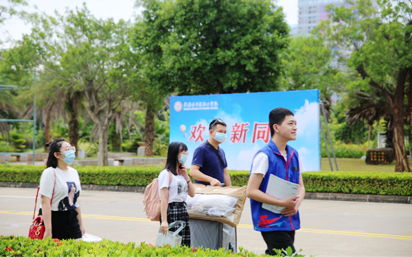 鮮艷的歡迎橫幅在校園里迎風(fēng)飄揚(yáng),道路兩旁是清晰醒目的指示牌,一個個朝氣蓬勃的面孔迎面而來。年年開學(xué)日,歲歲新人來。經(jīng)歷過了七月的戰(zhàn)場,每一位新同學(xué)都是突破超越了自己的勇士。祝愿2020級新同學(xué)在海外院乘風(fēng)破浪踏上新征程,不負(fù)韶華追求卓越新篇章,在海南自貿(mào)港的熱土上放飛夢想、綻放青春之花。