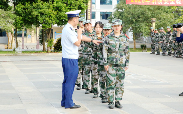 為進一步加強學(xué)生的安全意識,提高自身安全意識和自救自護能力,切實保障大家的生命安全。10月22日下午,我院在綜合樓前小廣場開展2020年消防安全教育暨消防疏散演練進軍訓(xùn)活動。學(xué)生處處長、文昌市消防救援支隊楊植昇參謀、文昌市消防救援支隊劉文軍參謀、文昌市消防救援支隊消防員們、全體2020 級新生及全體教官參加本次活動。學(xué)生處處長主持本次活動。