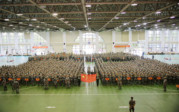 在雄偉而莊嚴的國歌聲中,軍訓總結大會拉開帷幕。
