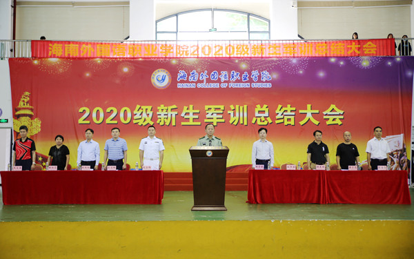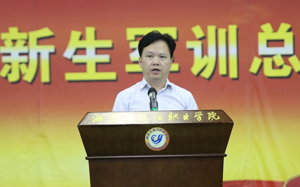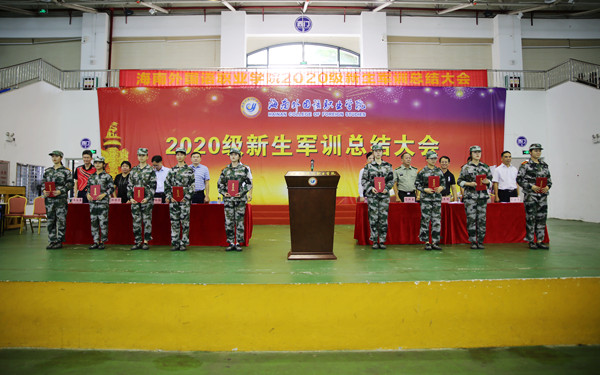 10月25日下午,我院2020級新生軍訓總結大會在體藝館舉行。學院副院長楊學前、文昌市武裝部趙金路、各部門(系部)主要領導、全體承訓官兵、參訓新生參加大會。學生處處長主持大會。