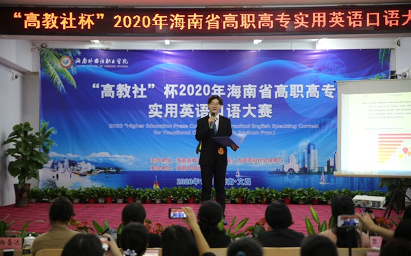 我院副院長梁松、海南師范大學楊蕾達教授、海南科技職業(yè)大學陳宗華教授、海南省外語職業(yè)教育教學指導委員會副主任張春玲教授、海南軟件職業(yè)技術(shù)學院黎明珠副教授、海南大學陳鳴芬教授、海南師范大學林靜副教授、海南醫(yī)學院外語部主任竇巖教授、海南熱帶海洋學院外國語學院院長王穎教授、瓊臺師范學院外國語學院院長馬玉蓉副教授、海南經(jīng)貿(mào)職業(yè)技術(shù)學院國際教育學院副院長黎瑛副教授、海南外國語職業(yè)學院教學指導委員會主任景志華教授、高教社高級營銷主管竇汝昕、高教社海南教服中心外語院代李朝魁出席大賽開幕式。