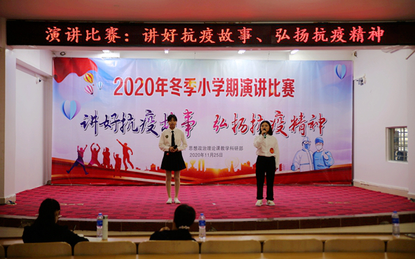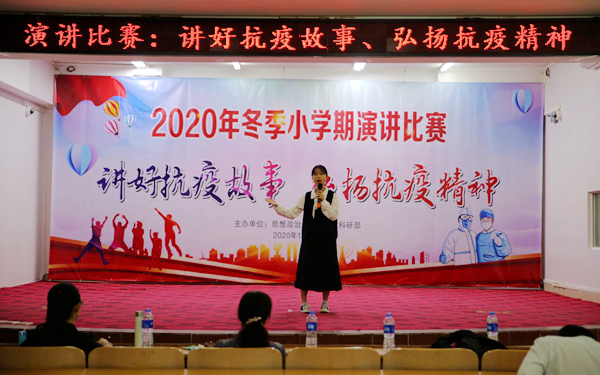 為進一步弘揚中國偉大的抗疫精神,增強大學(xué)生家國情懷和民族自豪感,我院于11月25日在多功能報告廳舉辦冬季小學(xué)期“講好抗疫故事 弘揚抗疫精神”演講比賽。思政部周清云主任,以及陳穎瓊、陳若團、周群林、趙佳鈺等專業(yè)任課教師擔(dān)任比賽評委。
