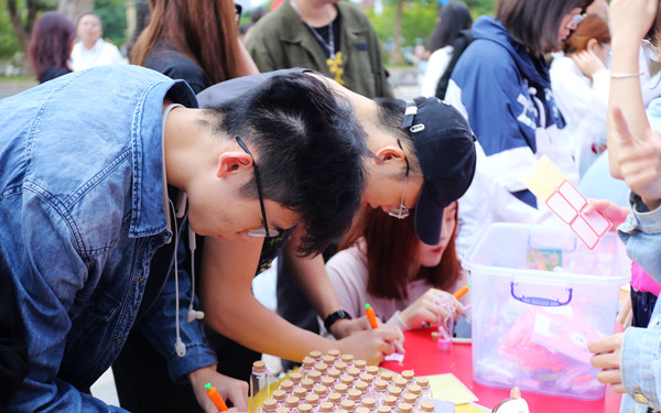 25日下午,活動(dòng)現(xiàn)場(chǎng)的同學(xué)們將對(duì)自己的期許寫(xiě)在便簽上貼在活動(dòng)板中,寄存愛(ài)的漂流瓶寫(xiě)下對(duì)校內(nèi)同學(xué)、老師、朋友想說(shuō)的話并由心理社團(tuán)的同學(xué)們轉(zhuǎn)交、進(jìn)行一個(gè)愛(ài)的傳遞,由可愛(ài)人偶分發(fā)心理宣傳手冊(cè),讓同學(xué)們學(xué)習(xí)基本的心理知識(shí)。
