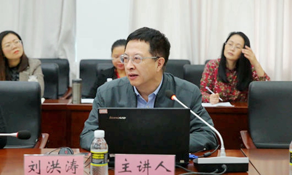 12月7日上午,我院在綜合樓7樓第一會(huì)議室舉辦兩場別開生面的講座,特邀北京師范大學(xué)文學(xué)院比較文學(xué)與世界文學(xué)研究所所長、博士生導(dǎo)師劉洪濤教授和湖南科技大學(xué)奮進(jìn)學(xué)者、湖南省中國特色社會(huì)主義理論體系研究中心特約研究員劉良順博士到校講學(xué)。學(xué)院副院長楊學(xué)前、學(xué)院特聘教授熊沐清、學(xué)院教指委主任景志華教授出席講座,學(xué)院各系部40多名教師參加講座。熊沐清教授主持講座。