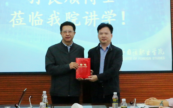 講座開始前,楊學(xué)前副院長首先對兩位專家學(xué)者的到來表示了熱烈歡迎,并為劉洪濤教授頒發(fā)了海南外國語職業(yè)學(xué)院客座教授聘書。