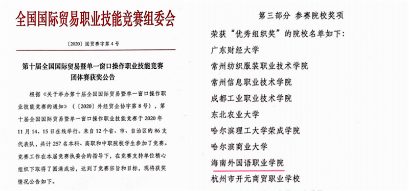 近日,在第十屆全國國際貿(mào)易職業(yè)能力競賽暨“單一窗口”操作技能競賽中,我院國際商務(wù)系參賽選手隊?wèi){借扎實的專業(yè)知識和過硬的實操技能榮獲一個一等獎和兩個二等獎。