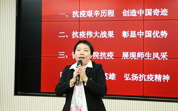 講座尾聲,旅游系黨總支書記林明霞在總結(jié)講話中,號召同學(xué)們致敬抗疫英雄,弘揚偉大抗疫精神,將中華民族在本次突發(fā)重大疫情中迸發(fā)出的英雄精神銘記在心里、落實在行動中。