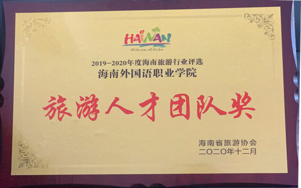 評選中我院因悠久的辦學歷史、完備的辦校規(guī)模、優(yōu)良的師資水平、主動服務國家“一帶一路”倡議和自由貿易港建設的辦學定位以及“一體兩翼一提升”的特色優(yōu)勢在參評單位中脫穎而出,榮獲2019-2020年度“海南省旅游人才團隊獎”。