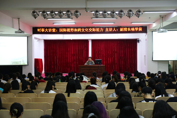 為進一步培養(yǎng)學(xué)生跨文化交流意識,拓展國際化視野,提升跨文化交流能力,我院于12月28日在多功能報告廳舉行時事大講堂,副院長楊學(xué)前以《國際視野和跨文化交際能力》為題,給大家上了一堂形勢與政策課。