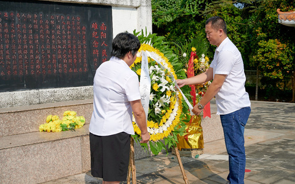 向南陽(yáng)人民英雄紀(jì)念碑敬獻(xiàn)花圈,致敬革命先烈