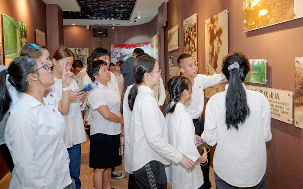 全體人員依次瞻仰張?jiān)埔荽髮~像并送上鮮花,表達(dá)對(duì)張?jiān)埔荽髮⒌纳钋芯拺?,同時(shí)參觀了陳列館。