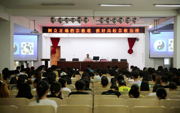本次講座,宋星河處長利用多方面宗教知識資料,通過一個個鮮活的事例,使老師們同學們對宗教的本質有了深刻的認識。他表示,我們在思想上要認同我國的宗教信仰自由政策,言行上要尊重宗教信仰自由政策。要做到“兩個不得”和“五個嚴禁”。宋處長對如何促進民族工作提出了幾點工作思路,要切實服務科學發(fā)展。在宗教工作中,要牢牢把握把堅持黨的宗教工作基本方針,保障公民宗教信仰自由和依法管理宗教事務結合起來,把發(fā)揮宗教在促進經濟社會發(fā)展中的積極作用和抵御境外利用宗教進行滲透結合起來。