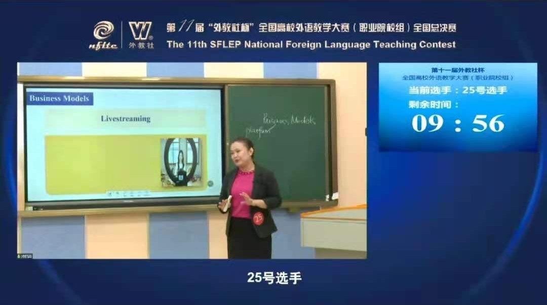 授課比賽中,選手表現出扎實的語言綜合運用能力、較強的課堂教學能力和較高的教學理論水平,在教學中充分挖掘思政資源,將價值觀引導與對學生的知識傳授和能力培養(yǎng)結合起來;每位選手背后的技術團隊嫻熟運用在線教育技術,保證了授課直播的順利進行,充分展現了職業(yè)外語教學的先進水平。