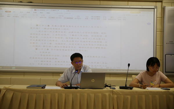 組織科副科長符婕就學(xué)院黨員發(fā)展過程中的常見問題作逐項講解,對于發(fā)展黨員工作流程中可能出現(xiàn)的易錯易漏點再次進行了說明。