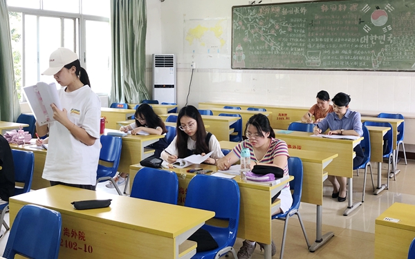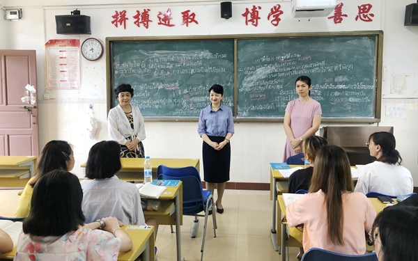 5月12日早上,伴隨著同學(xué)們朗朗的讀書聲,學(xué)院院長李渝鳳教授在上周深入西語系和國際商務(wù)系聽課調(diào)研基礎(chǔ)上,繼續(xù)深入東語系開展聽課走訪調(diào)研。李渝鳳院長分別選聽了泰語、柬埔寨語兩門東盟非通用語專業(yè)課程,并在課后分別開展了師生座談,更深層次的了解學(xué)院 “一帶一路”沿線國家尤其是東盟國家非通用語專業(yè)的具體建設(shè)情況及課堂教學(xué)效果,為東語系進(jìn)一步深化教育教學(xué)改革,全面提高課堂教學(xué)質(zhì)量和小語種人才培養(yǎng)質(zhì)量帶來了及時(shí)雨般的意見建議。在國家“一帶一路”倡議和海南自貿(mào)港建設(shè)的背景下,李渝鳳院長要求持續(xù)推動(dòng)學(xué)院東盟非通用語及我院所開設(shè)的20個(gè)語種專業(yè)建設(shè)向前發(fā)展,進(jìn)一步拓寬發(fā)展視野,打開教育國際合作交流的新方式、方法,以實(shí)際行動(dòng)承擔(dān)起學(xué)院作為海南省唯一一所公辦外語類高校的使命與擔(dān)當(dāng)。