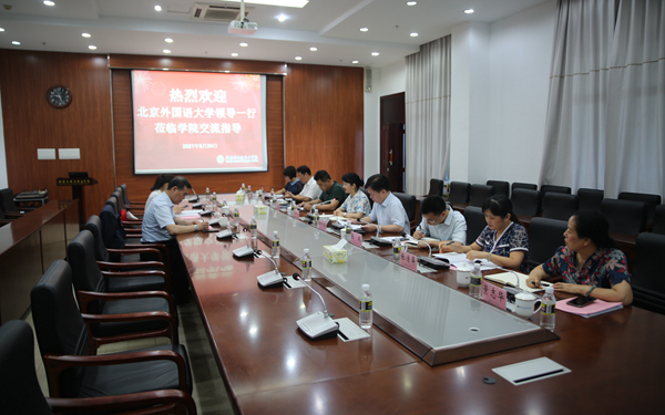 隨后,楊學(xué)前副院長、梁松副院長以及與會人員,就進(jìn)一步深化學(xué)院與北外的校際合作,全力承辦好2021年全國職業(yè)院校技能大賽英語口語賽項比賽進(jìn)行了深入細(xì)致的交流。