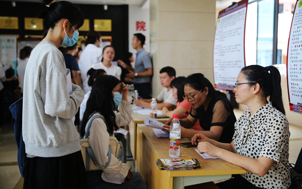 為搭建畢業(yè)生與用人單位之間的橋梁,為畢業(yè)生直接與用人單位見(jiàn)面搭建平臺(tái)、創(chuàng)造條件,使我院畢業(yè)生順利就業(yè),高質(zhì)量就業(yè),更好地落實(shí)做好“六穩(wěn)”工作和“六?!比蝿?wù),5月28日,我院在綜合樓一樓大廳舉辦2021屆畢業(yè)生留瓊就業(yè)暨2022屆教育類(lèi)專(zhuān)業(yè)招聘會(huì)活動(dòng)。