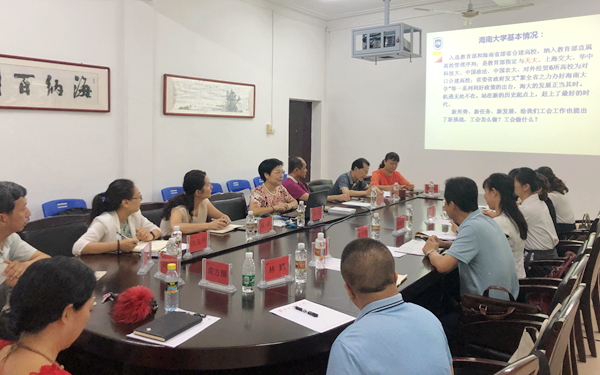 為進一步加強與兄弟院校之間的交流與合作,學(xué)習(xí)借鑒其他高校工會的寶貴經(jīng)驗和特色做法,6月4日上午,我院工會組隊赴海南大學(xué)工會進行學(xué)習(xí)調(diào)研。本次學(xué)習(xí)調(diào)研由學(xué)院黨委副書記黃麗芹、工會常務(wù)副主席黃守劍帶隊,工會委員林鵬、譚鳳、文惠玉、潘婷婷,女工委委員鄭一新等參加學(xué)習(xí)調(diào)研。
